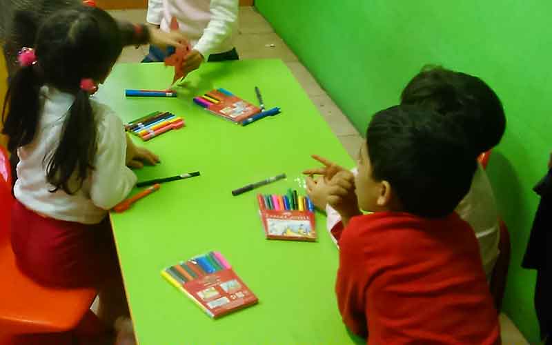کلاس تمام شده. بچهها به هم کمک میکنند و مدادرنگیهایشان را سر جایشان میگذارند. بعد دستدردست مادر از دنیای رنگارنگشان پا به خیابان خاکستری میگذارند.