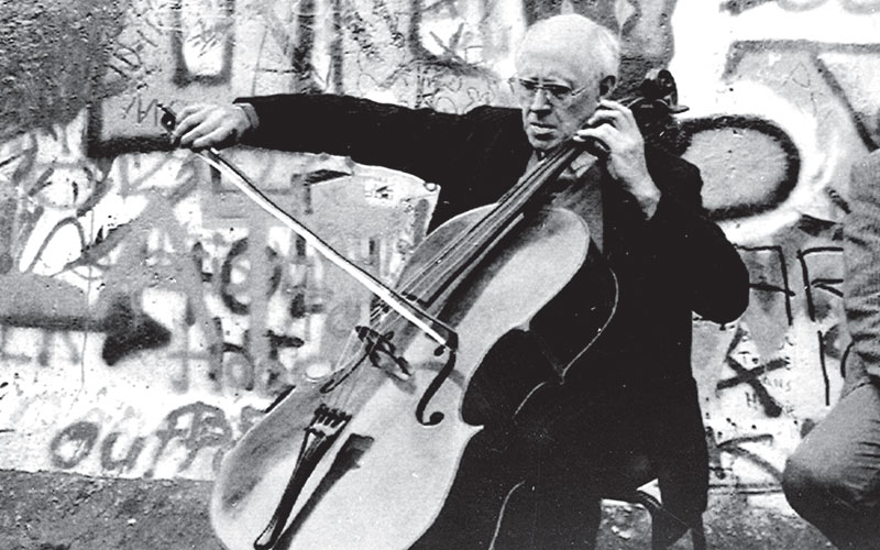 پیرمردی در پای دیوار فروریخته‌ی برلین ویولنسل می‌نوازد؛ «سوئیت شماره‌ی دو» باخ در هوایی سرد و به شکرانه‌ی «معجزه»ی فروریختن دیوار برلین. تصویری که در یازدهم نوامبر ۱۹۸۹ ثبت شد، در همه جای جهان دیده و بخشی از تاریخ شد. او امستیسلاو روستروپوویچ است، نوازنده‌ی شهیر ویولنسل. کار او نمایشی تبلیغاتی بود یا عملی سیاسی؟ شاید هر دو. و البته شاهدی بر اینکه موسیقی همیشه بعدی سیاسی دارد.