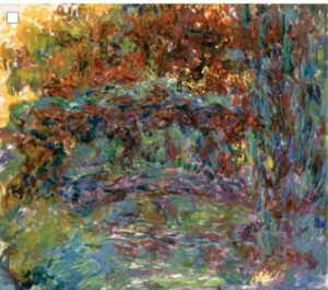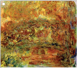 دو نقاشی مونه از پل ژاپنی باغ ژیورنی، کشیدهشده بین سالهای ۱۹۱۸ تا ۱۹۲۲. موزهی مارموتان، پاریس.